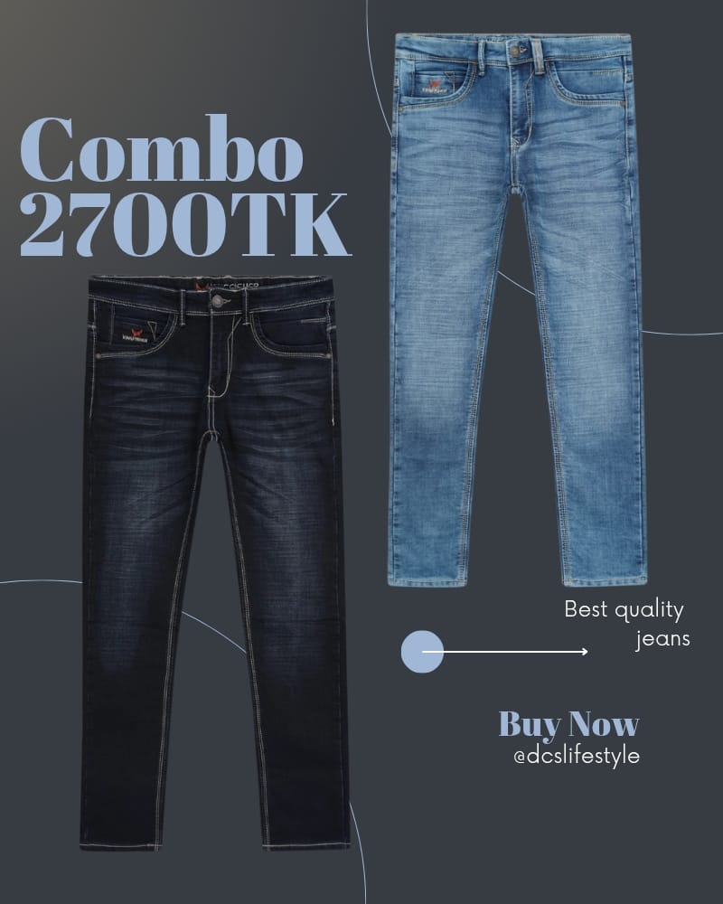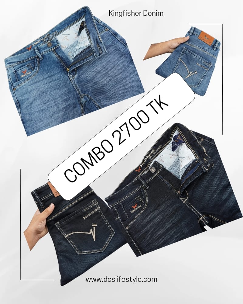 02 Pcs Jeans in Denim fabric. Five pockets, button fastening on the front & zipper fly. Slim fit.